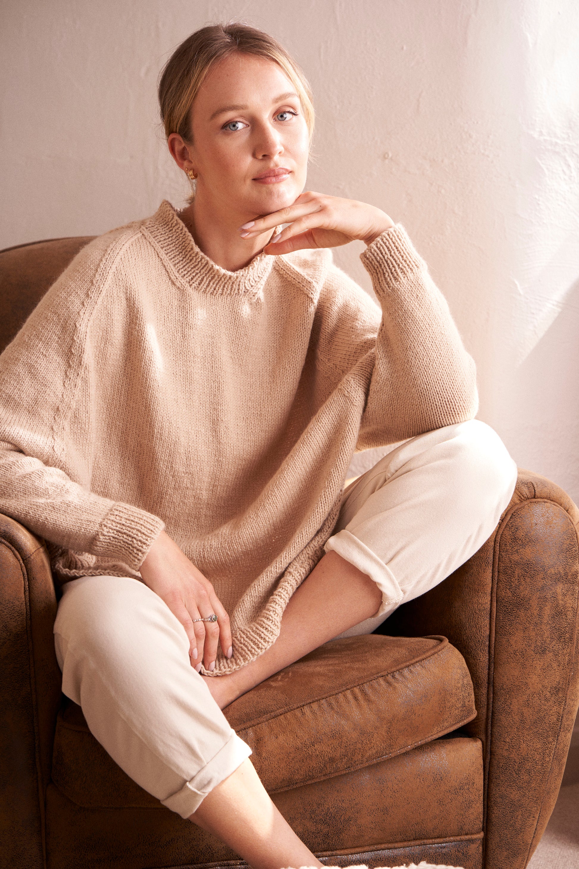 A poncho style sweater in Rowan Yarns Alpaca Soft DK. Sure to be a key piece in your wardrobe and a firm favourite in the Knit + Wear studio.