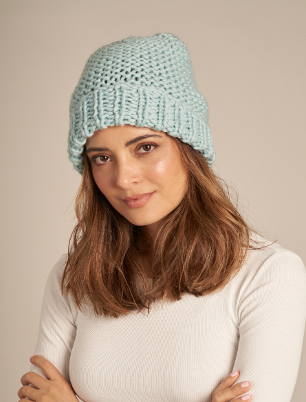The Vale beanie is an excellent beginner project. Using Rowan Yarns Big Wool.